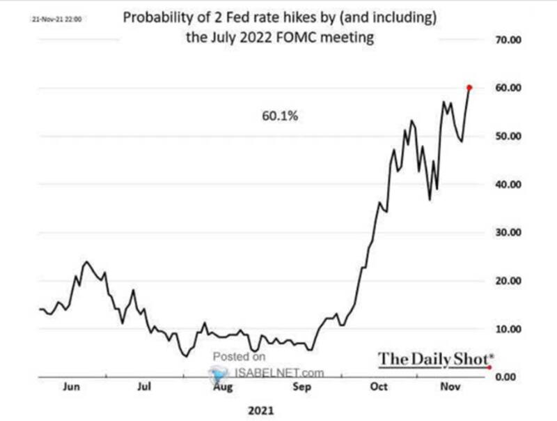 Debido a las mayores presiones inflacionarias, la probabilidad de ver dos subas de tasas en 2022 supera el 60%.