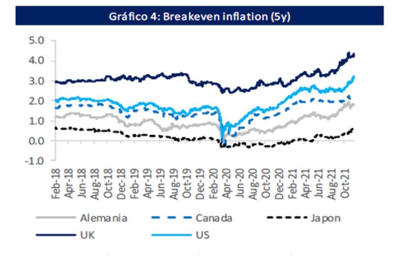 Así, las expectativas de inflación incorporadas en los bonos se ubican en su mayor nivel multianual.