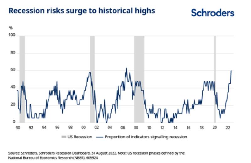 Según los analistas de Schroders, existe un 60% de probabilidad de que la economía americana se dirija hacia una recesión, siendo la más alta desde 2006.