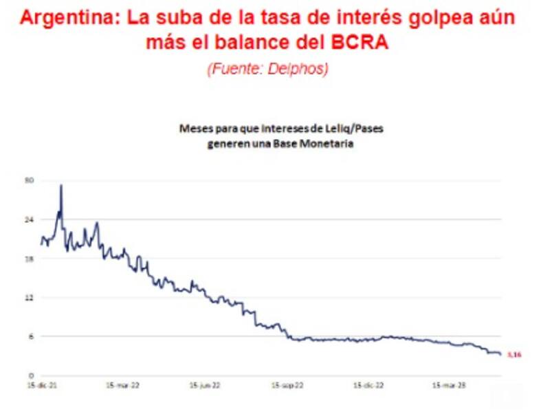 Ese mismo stock devengando al 97% (TNA), implica que todos los meses el BCRA debe emitir más de $ 800.000 millones para hacer frente a los intereses de esos mismos pasivos.