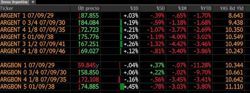 Los bonos de la deuda argentina cotizaban en verde con ligeras subas de 0,2 por ciento.