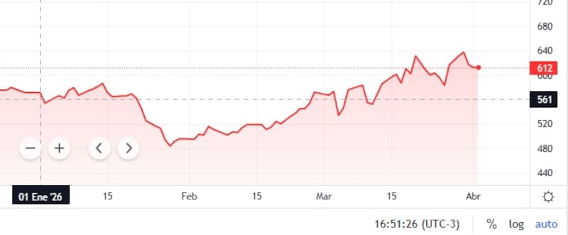 El humor global y la falta de apetito por los bonos de la deuda argentina, que habían llevado el índice de riesgo país a 627 puntos, se morigeró hasta 612 puntos básicos.