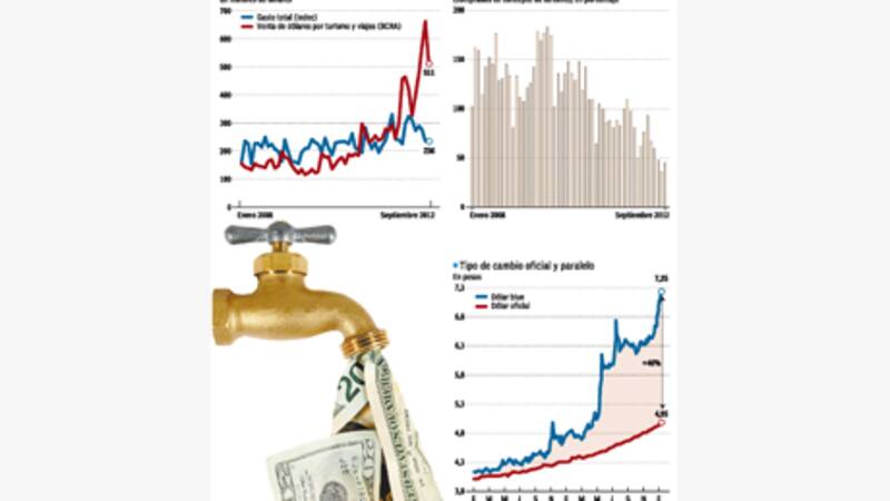 Las dos series mostraron siempre, en los últimos años, cierta correlación. En algunos períodos, incluso, el gasto de los turistas argentinos en el exterior llegó a superar el tamaño de las compras de dólares por este concepto (los argentinos podían utilizar, por ejemplo, divisas que tuvieran previamente atesoradas). Pero las curvas empezaron a distanciarse enormemente a partir de que el Gobierno decidió aplicar el cepo oficial sobre la venta de dólares, a fines de octubre pasado. Desde entonces, la adquisición de divisas con este destino se convirtió prácticamente en la única vía legal de acceso a estos escasos y jugosos dólares oficiales (ayer a $ 4,94, un 45% por debajo del blue, de $ 7,20), y empezó a crecer a tal ritmo que llegó casi a triplicarse.