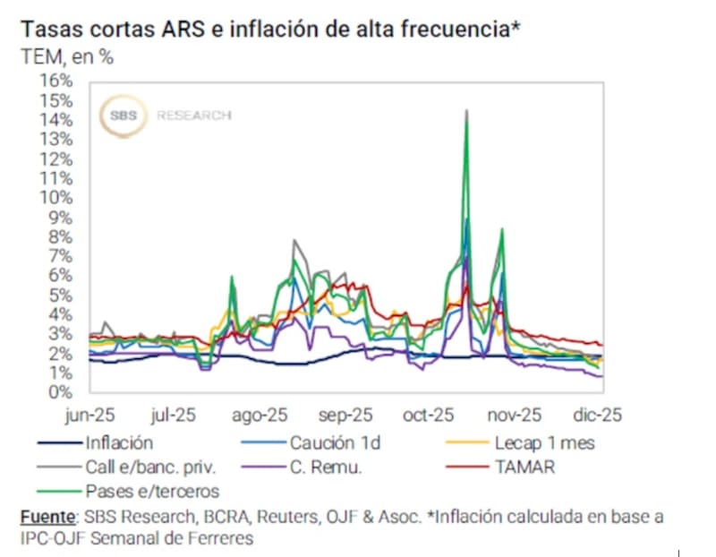 Además, agregaron que “la combinación de menor oferta de títulos cortos, mayor dinamismo del crédito privado y una referencia TAMAR más baja contribuye a recomponer gradualmente la demanda de dinero en pesos y a estabilizar el ancla financiera de la economía de cara a 2026”.