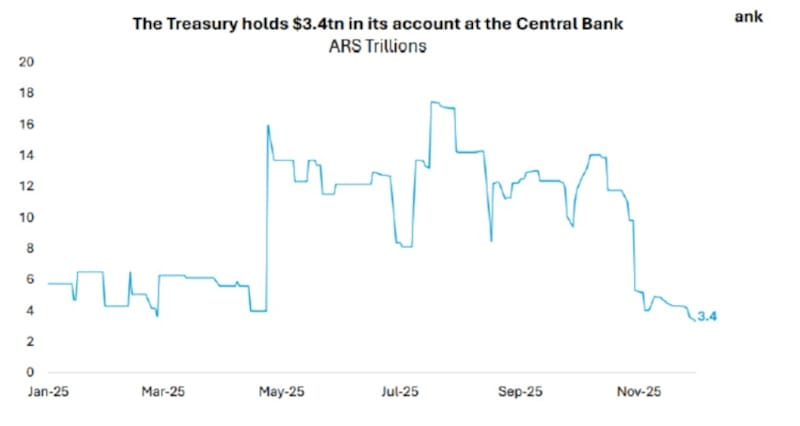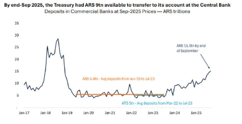 Desde la elección, los depósitos en pesos del Tesoro en el BCRA cayeron $8,1 billones a la zona de $3,6 billones, siendo este un mínimo desde mayo de 2024.