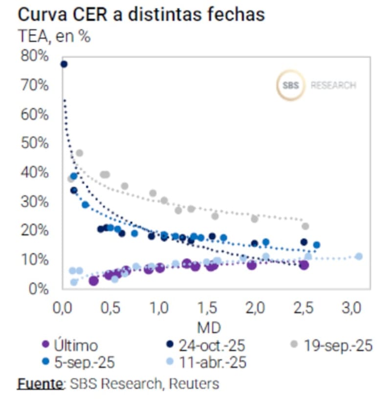 La curva CER llegó a operar con tasas reales del 50% y con una curva invertida, mientras que posterior a las elecciones, la misma revirtió completamente.