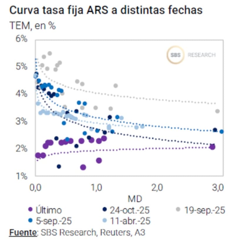 Por otro lado, Franco explicó que, tras meses de alta volatilidad en las tasas cortas en pesos, la situación parece comenzar a calmarse tras las elecciones de fines de octubre.