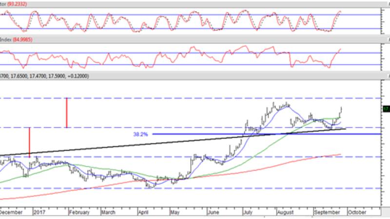 Tal como sostuvimos en notas previas, el dólar generó una lateralización entre noviembre de 2016 y junio de 2017 entre los mínimos de $ 15,1 y $ 16,1 pesos y una vez que el límite superior de la banda de operaciones fue quebrada al alza, el dólar replicó el mismo tamaño de esa lateralización y buscó la zona de $ 17-$ 17,1.