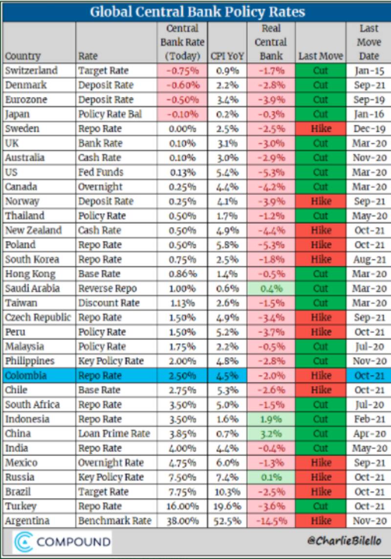 Si bien la atención se concentra en lo que hará la Reserva Federal de Estados Unidos (Fed), otras entidades monetarias mundiales ya han elevado sus tasas de interés, medida mediante la cual buscan combatir la aceleración inflacionaria.