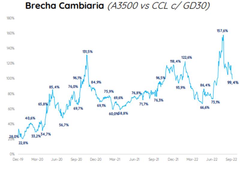 "Creo que los meses de noviembre y diciembre van a ser de alta demanda de dólar, por estacionalidad. También hay que tener en cuenta que iniciamos el año electoral el año que viene y es esperable que tengamos carteras altamente dolarizadas hacia 2023. Por eso, esperamos que esta baja del CCL se frene en noviembre", dijo Bagilet.