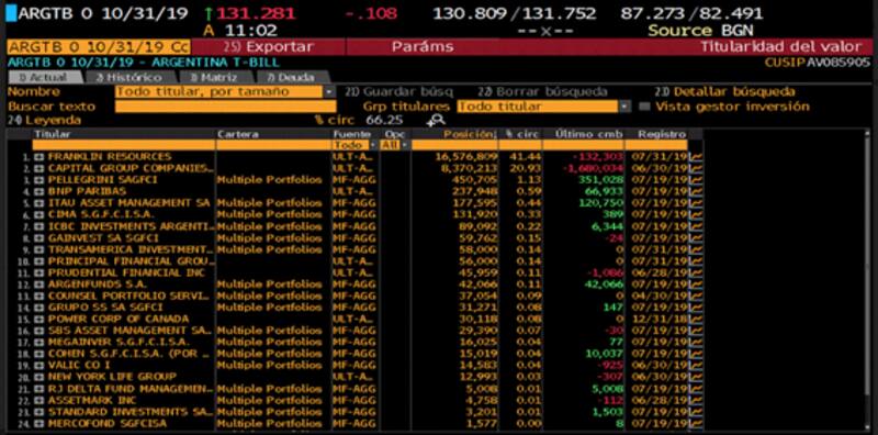 Por otro lado, para el vencimiento del 31 de octubre, Templeton posee el 41,44% del total del vencimiento con un total de $16.576 millones, seguido por Capital Group Companies y Fondos Pellegrini. El fondo BNP Paribas e Itau Asset Management conforman los 5 inversores más importantes de dicho vencimiento.