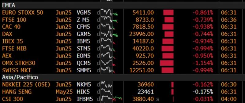 El oro, otro refugio de cobertura, recuperaba precio volviendo a la carrera por sus récords históricos que había abandonado cuando cedió hace dos semanas la guerra comercial declarada al mundo por Donald Trump. Las bolsas europeas y asiáticas retrocedían hasta 1%.