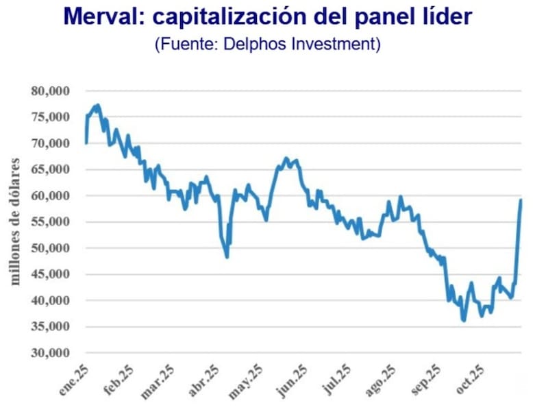 Desde Delphos Investments indicaron que el Merval extendió su rebote con una nueva suba, acumulando un alza de u$s 16.000 millones en capitalización en solo dos ruedas y alcanzando niveles similares a los máximos de agosto.
