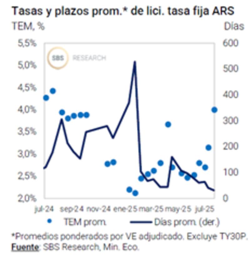 "Consideramos que, debido a la proximidad electoral y la persistente volatilidad cambiaria, resulta más prudente mantenerse cortos en duration y evitar extenderse hacia tramos más largos. A partir de la dinámica observada en las últimas licitaciones y las presiones al alza sobre el tipo de cambio, es probable que el Tesoro continúe convalidando tasas elevadas en sus colocaciones. En este contexto, las licitaciones podrían mantenerse como una oportunidad atractiva para captar rendimientos elevados en el tramo corto de la curva", detallaron.