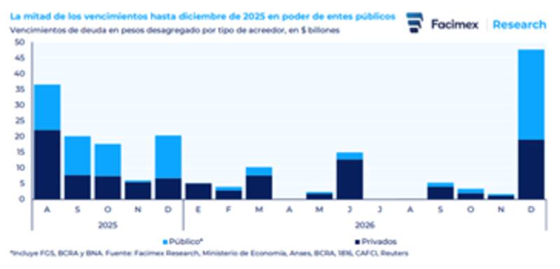 Desde Facimex Valores estimaron que la mitad de los vencimientos entre agosto y diciembre está en poder de entes públicos (BCRA + FGS + BNA).