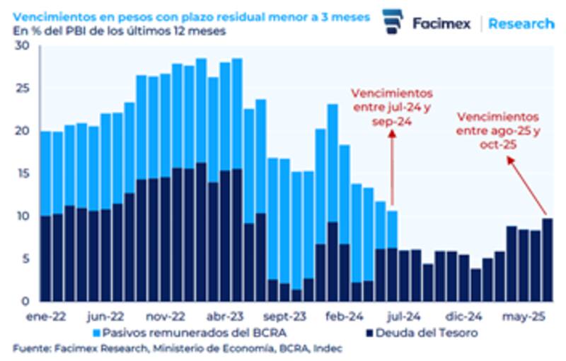 En esa línea, explicaron que la concentración de vencimientos se da luego del fin de las Letras Fiscales de Liquidez (LEFI) y que el monto total no es tan elevado como en otros momentos de la macro local.