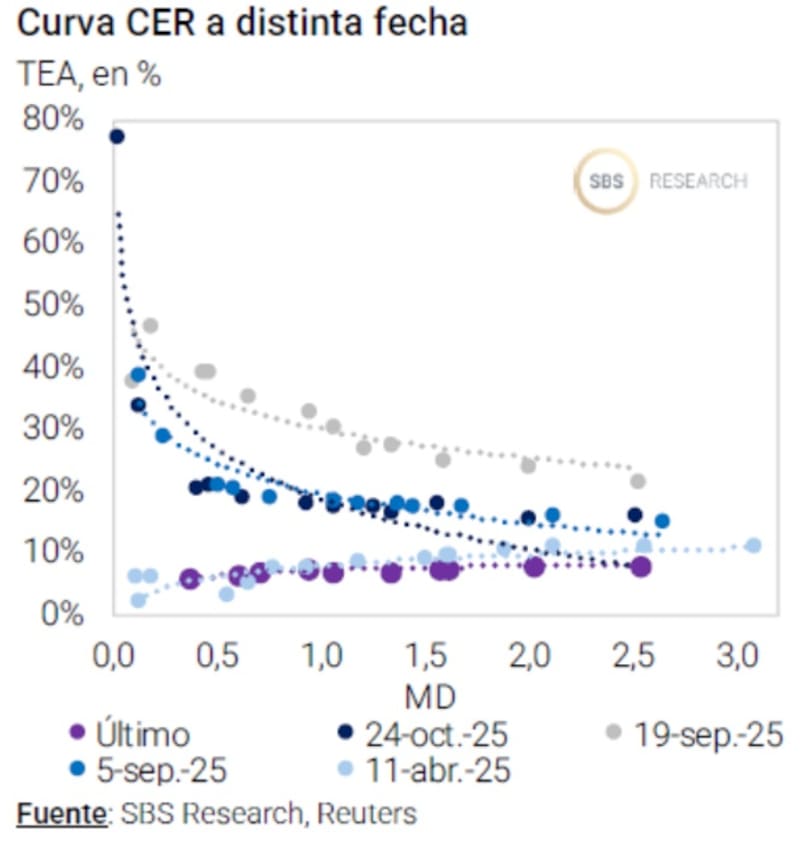 “Comparando con la curva CER, la inflación breakeven aumentó en el margen, aunque sigue en niveles menores a 2% mensual para 2026. Consideramos que, a estos niveles, luce más atractivo CER que tasa fija. Lógicamente, para aquellos que busquen baja duration, este tipo de exposición se logrará sólo vía Lecaps, y en este espacio preferimos aquellas con vencimiento en el primer trimestre de 2026”, dijo.