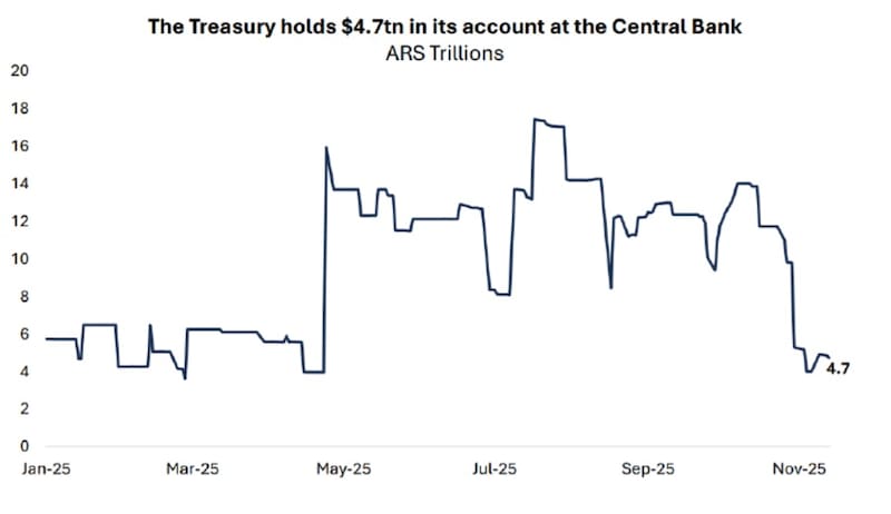 En este marco, vale la pena recordar que el Tesoro tiene depósitos por $4,4 billones en el BCRA y, a septiembre, $15,1 billones en el Banco Nación.