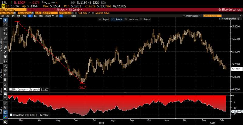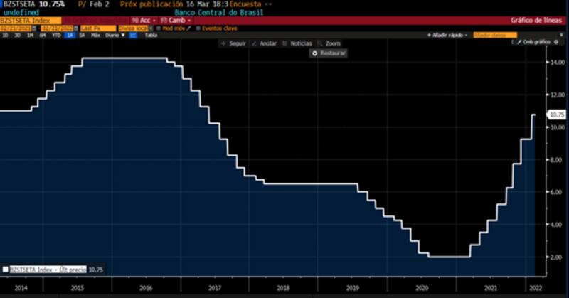 "Brasil fue uno de los primeros países de LATAM en dar inicio a un periodo de tasas crecientes tras la pandemia. El Banco Central de Brasil llevó a cabo ocho retoques en la tasa de Selic desde marzo (menos de un año) volviendo a los niveles del 2017. El diferencial de tasas a nivel global impulsó la entrada de capitales extranjeros", dijo Patron Costas.