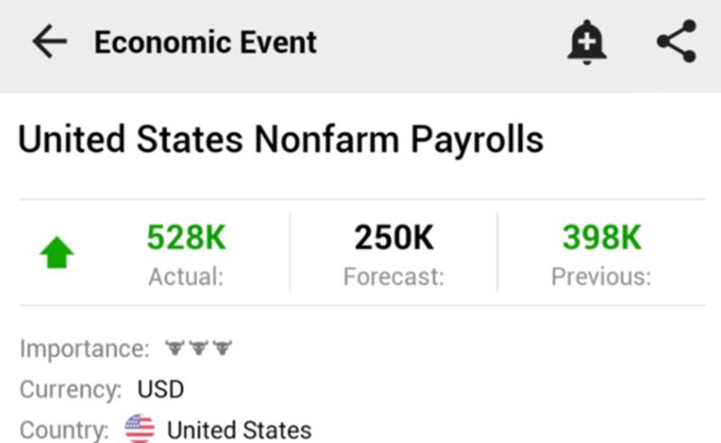 Es decir, el mercado esperaba que se crearan menos puestos de trabajo respecto del mes anterior, que había sido 398.000. Sin embargo, la economía americana dio la sorpresa creando más puestos de trabajo que los esperados e incluso muy por encima también de lo que se registró el mes pasado.