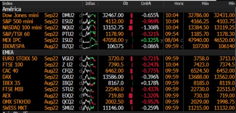 Los mercados operan con fuertes bajas al comienzo de la rueda luego del dato de empleo. La economía norteamericana creó 528.000 puestos de trabajo en julio cuando se esperaba que se crearan 250.000.