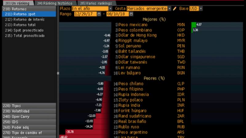 Por todo esto, las monedas emergentes se encuentran bajo presión y con la devaluación de la lira turca hoy, ha posicionado a dicha divisa a la de peor desempeño en este 2018 con una baja del 40,6%. Durante gran parte del año el peso argentino había sido la moneda emergente de peor desempeño, y por la suba del 13% del dólar en Turquía, el peso argentino ha descendido a la segunda moneda de peor performance en 2018, con una devaluación del no menor 35,8%.