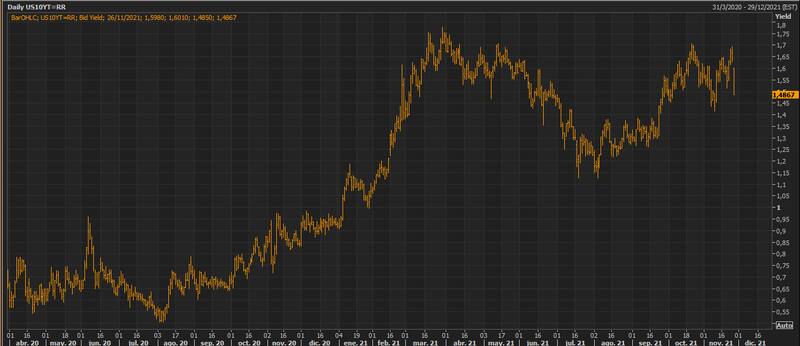 En un escenario de cautela, los inversores buscaron activos de refugio, provocando que los rendimientos de los bonos del Tesoro a 10 años caigan a niveles de 1,48% desde el 1,644% que operaban el miércoles, antes del feriado por el Día de Acción de Gracias.