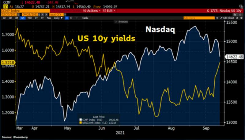 La expectativa de un cambio en la política monetaria de la Reserva Federal de los Estados Unidos (Fed) genera tensiones en el mercado. A esa incertidumbre se le sumaron dudas sobre un riesgo de default de la deuda de EE.UU., el rally del precio del petróleo y la crisis sin resolver de la gigante china Evergrande.