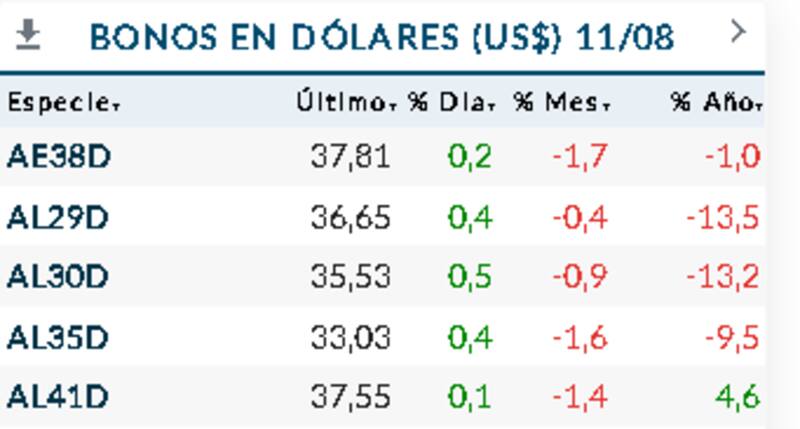 En lo que refiere a los legislación local, la suba más destacada fue la del AL30D, cuyo valor creció 0,5% en las planillas de ByMA