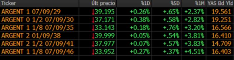 En cuanto a los globales, el principal crecimiento lo desarrolló el GD30, que subió 0,38%, para cerrar con una tasa interna de retorno de 19,3 por ciento.