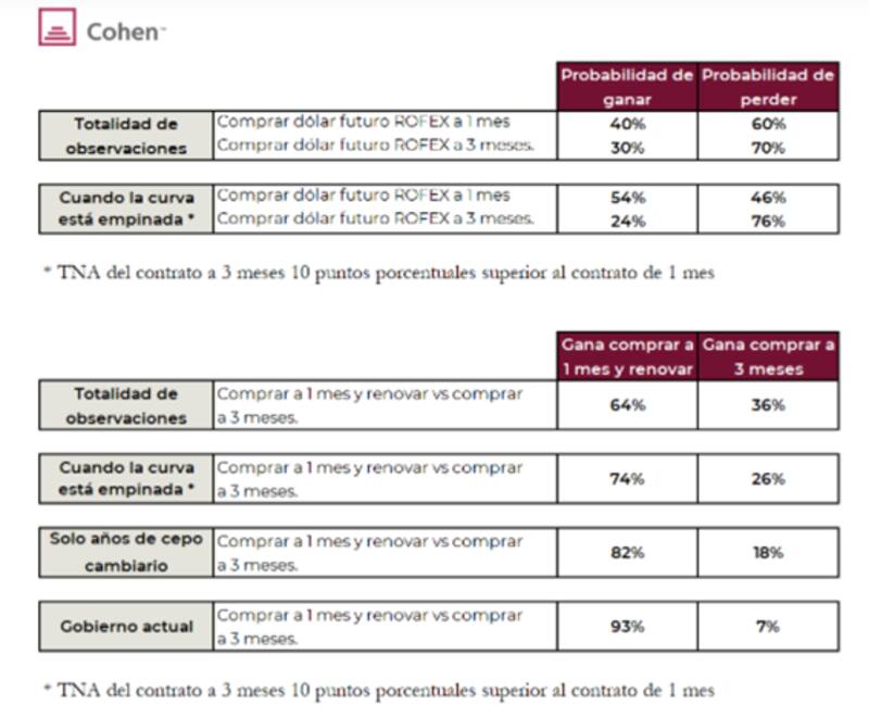 "La historia nos muestra que la estrategia de cubrirse a 1 mes, e ir renovando, le suele ganar a una cobertura larga. Las probabilidades de que dicha estrategia sea superadora son mayores en momentos de empinamiento de la curva (como el actual), o en momentos de cepo", comentó.