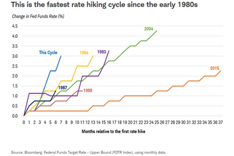 Hoy estamos en presencia del ciclo contractivo en la política monetaria mas agresiva desde 1980 y la expectativa es que la suba de tasas y el retiro de estímulos persista hacia adelante.