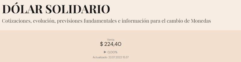 Para ello se debe tomar referencia el valor de compra del solidario, que hoy jueves con el agregado del Impuesto País más el anticipo de Ganancias, cotiza a $ 224,4.