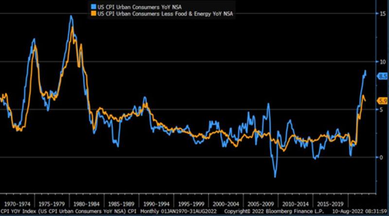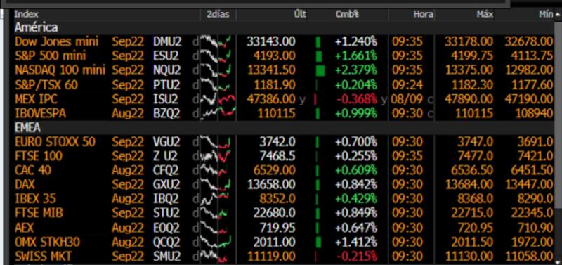 La inflación en los EE.UU. de julio alcanzó un ritmo de 8,5% anual contra el 8,7% esperada por el mercado, por lo cual suben las acciones dado que el mercado especula con una Reserva Federal menos agresiva en la suba de tasas.