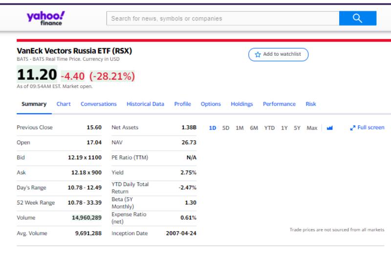 El índice de acciones rusas en dólar muestra una apertura bajista del 28% y con esta baja el mercado acumula una perdida del 64% desde sus máximos desde octubre pasado