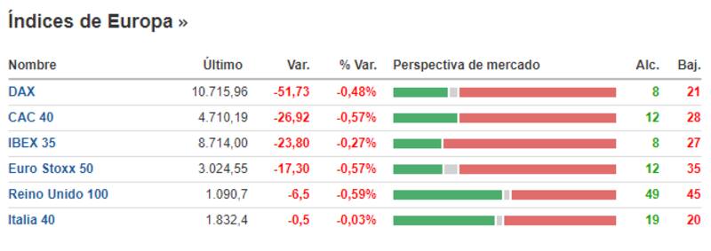 En Frankfurt los mercados también cerraron en rojo (-0,18%), mientras que Madrid y Milán fueron las únicas plazas europeas que operaron en positivo: 0,44% y 0,65%, respectivamente.