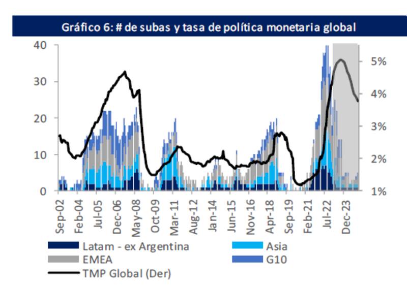 Finalmente, los analistas de Balanz también esperan una nueva suba de tasas para lo que queda del 2023.