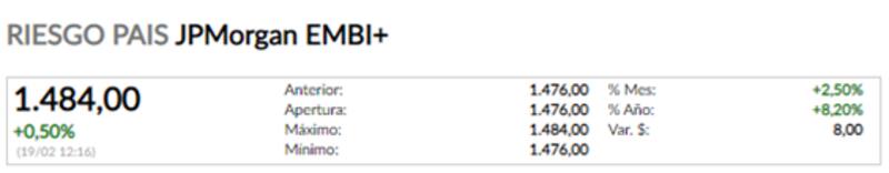 El riesgo país se ubica en 1484 puntos en la apertura del viernes, y de esta manera avanza un 38% desde los mínimos alcanzados en septiembre pasado, tras el canje de deuda.