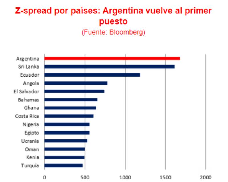Argentina tiene el nivel de tasas y riesgo país mas elevado del planeta, por encima de paises como Sri Lanka, Ecuador, Angola, El Salvador, Bahamas, Nigeria, Kenia, Oman, Egipto o Turquía.