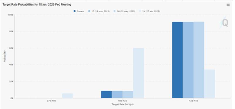 De esta manera, quedaría configurado un total de 50 puntos básicos de tasa de la Fed, lo cual es la mitad de lo que el mercado especulaba durante marzo y abril, cuando la guerra comercial entre EEUU y China estaba en su apogeo y los temores de estanflación se ubicaban en máximos.