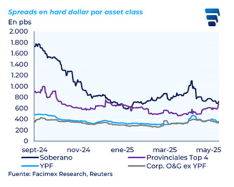 "En soberanos nuestros top picks son el GD41 y el GD35. En nuestro escenario base, los spreads de la deuda argentina estarán entre el EMBI (303pbs) y los emergentes high yield (412pbs) hacia fin de año. Esto favorecería particularmente a bonos largos como GD41 y GD35, por su mayor duration y alta convexidad, dejando retornos totales entre 29,8% 31,6% hasta fin de año", explicaron.