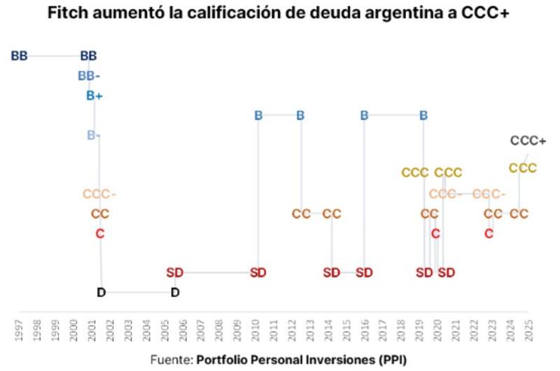 A ello se le sumó que Fitch elevó la calificación de deuda de Argentina de CCC a CCC+.
