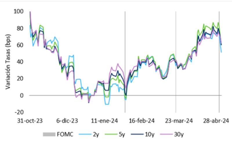 Lo que se observa es una fuerte baja en las tasas de los bonos del Tesoro americano, acompañando la expectativa de una Fed más laxa.