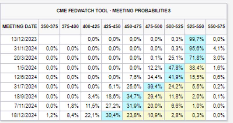 También son altas las chances de que la Reserva Federal no mueva la tasa en enero y marzo y se especula con que la primera baja de tasas va a ser en mayo del 2024.