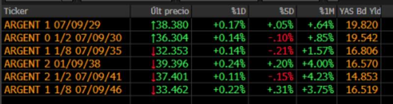 Hoy toda la curva opera con paridades debajo de 40%, con casos extremos como el AL35 que opera con paridades cercanas al 35%.