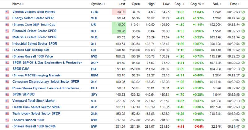 Prácticamente todos los sectores operan con ganancias el jueves, liderados por el sector de mineras, energéticas, compañías de pequeña capitalización, el sector financiero y de materiales, todas ellas ganando entre 1,8% y 0,9%.