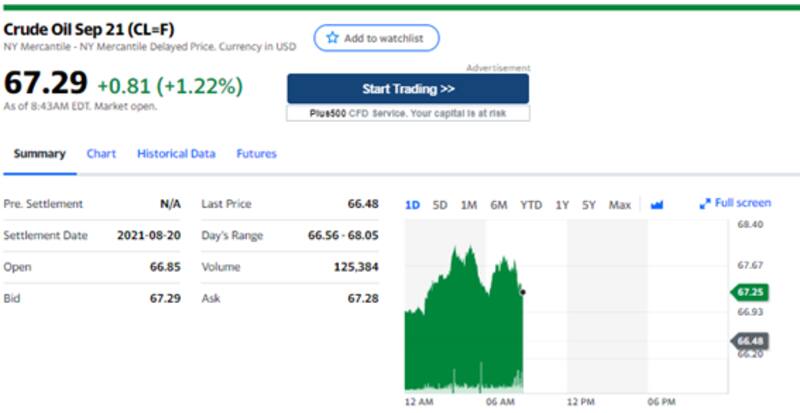 El petróleo se recupera 1,22%, hasta u$s 67,3 por barril, rebotando desde u$s 65 por segunda vez en los últimos dos meses.