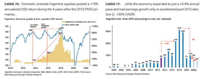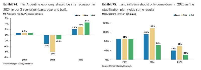 "Sin reservas de divisas, los políticos tendrán que estabilizar y reformar la economía, probablemente después de las elecciones del próximo año. Seguimos siendo alcistas en la deuda, nos volvemos constructivos en las acciones y vemos un riesgo/recompensa positivo en la mayoría de los sectores", dijeron desde Morgan Stanley.