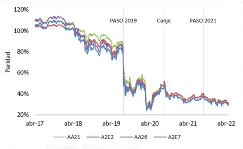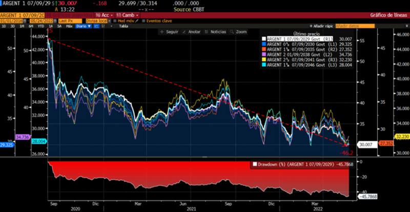 Recientemente, la deuda volvió a operar en mínimos históricos, con paridades debajo de 30% y con tasas que superan el 34% en el tramo corto de la ley local y cerca del 30% en el mismo tramo de la ley NY.