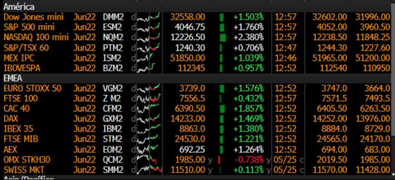 En Europa, las acciones también operan en verde, con ganancias de 1,5% en el caso del Stxx50.